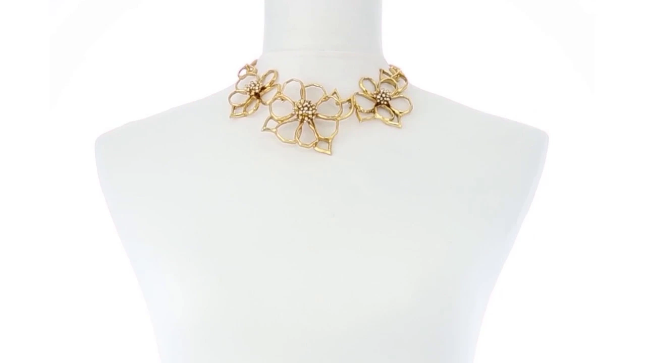 23. oscar de la renta | spring summer 2020 | full show watch your wardrobe bloom wearing the oscar de la renta™ flower necklace. gold-plated pewter brass metal flower necklace oscar de la renta | spring summer 2020 | full show