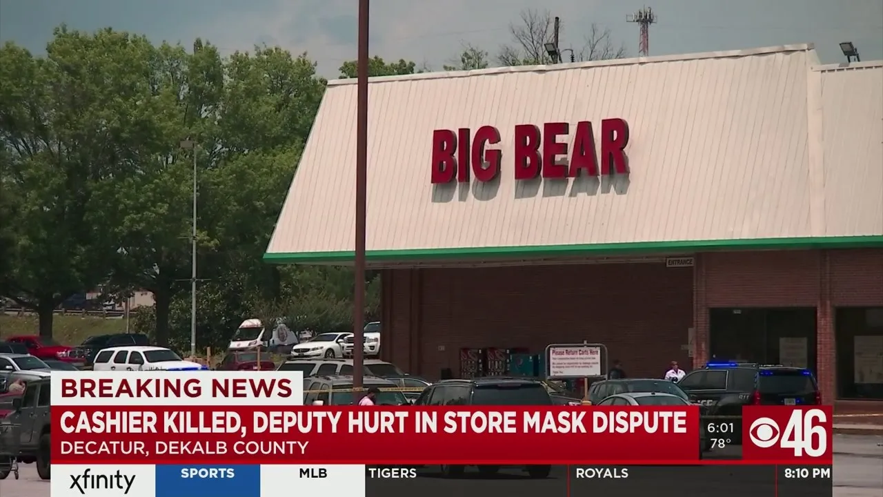 20. cashier at supermarket killed; dekalb co. deputy shot after altercation over mask.