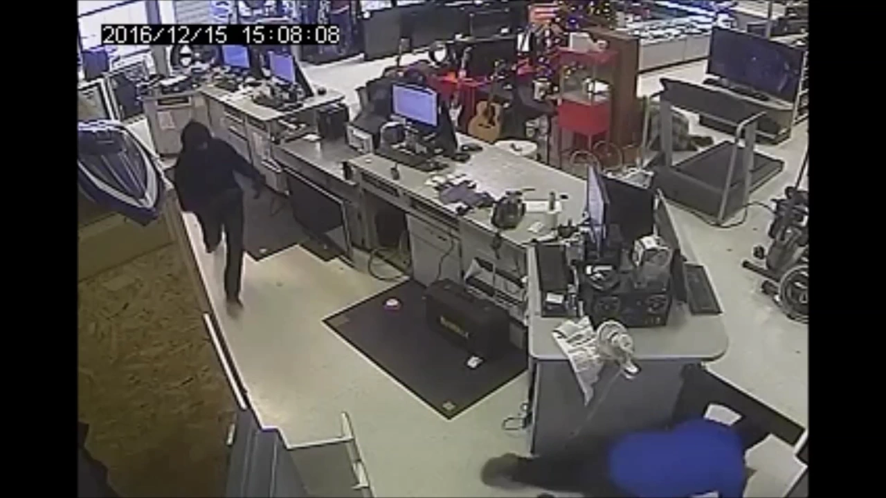 32. This is video of yesterday's violent robbery at the EZ Pawn in the 6900 block of NW Expressway. The video shows two men enter