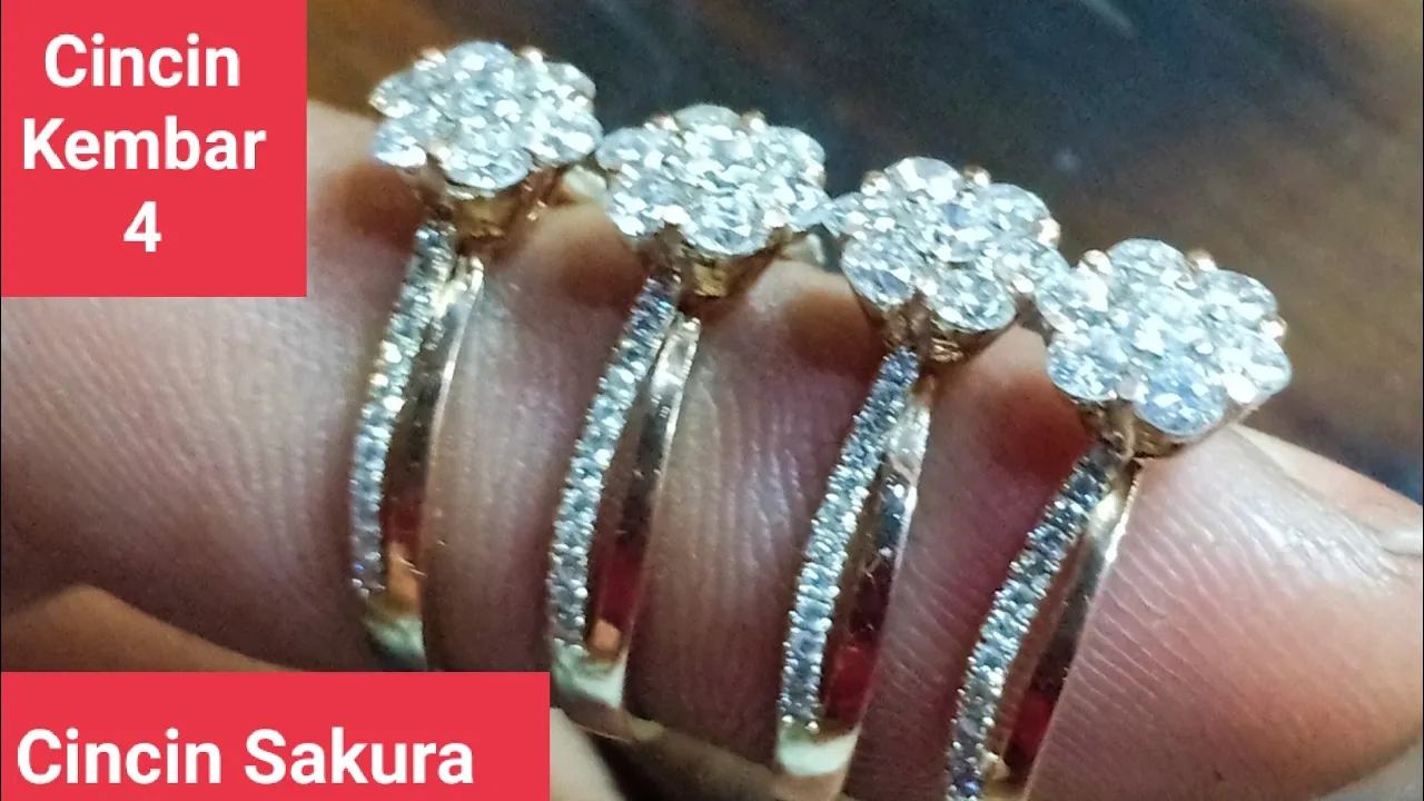 38. cincin sakura kembar 4, emas putih full berlian, perhiasan model terbaru 2021 apa kabar semuanya, lama tak jumpa yah,.