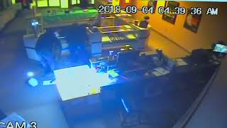 28. newly released surveillance footage shows a man sitting and acting casually as he talked to an employee, before pulling a gun