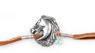 32. -Lauren's Hope Exclusive: Created right here in the Lauren's Hope Studio -Horse centerpiece is set between strands of leather